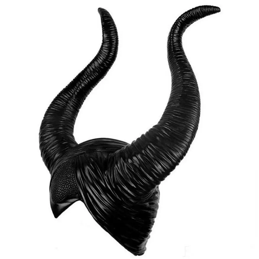 . (Zniżka 6%) Tanie Halloween Cosplay Maleficent czarownica rogi kapelusz nakrycia głowy maska na głowę kask Party czarna królowa Cena.