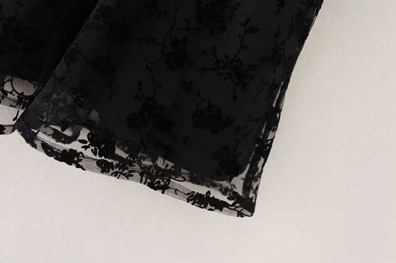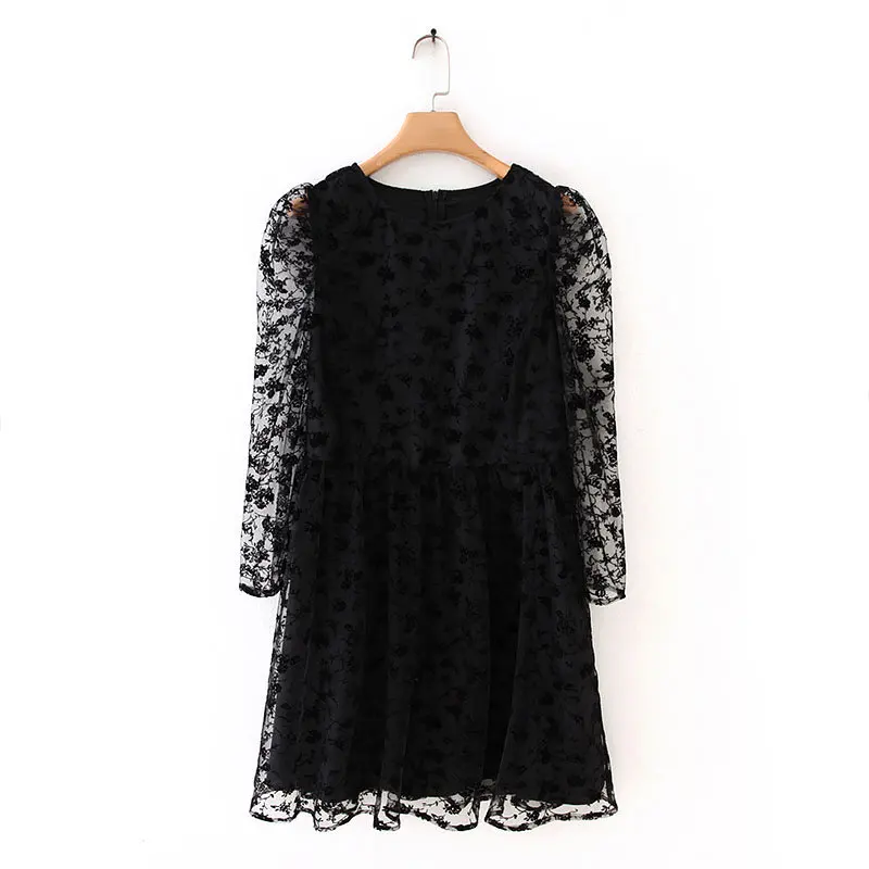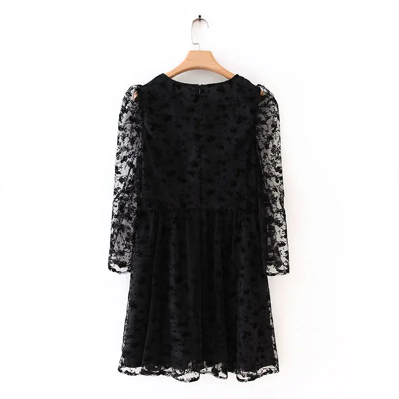 Product Name: Kobiet elegancki o neck puff rękaw kwiat drukuj mesh mini sukienka jesień panie sexy czarne na co dzień szczupła vestidos sukienek DS2939