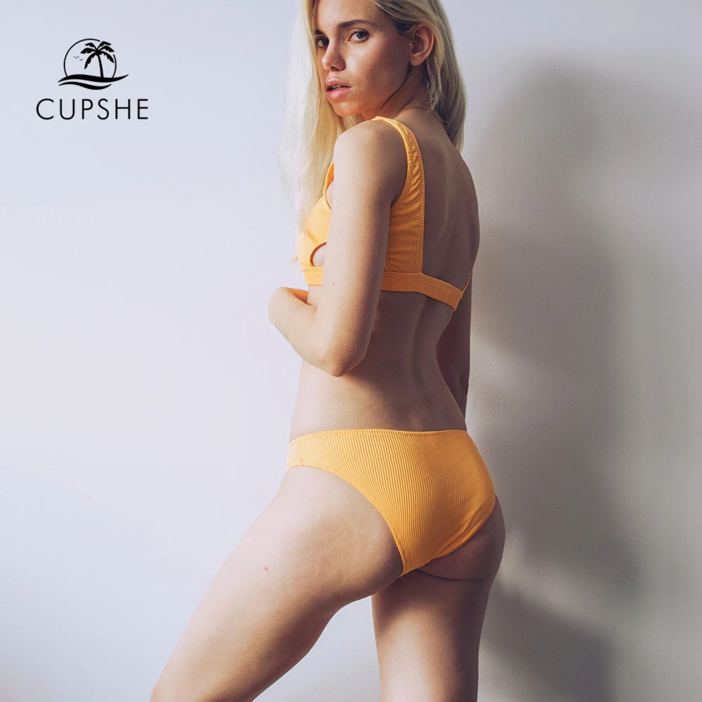 Special Offer Cupshe żółty pierzasta przędza stałe Bikini Set zwykły drążą wyściełany strój kąpielowy dwuczęściowy 2019 seksowne stringi damskie stroje kąpielowe Discount 22% Today!